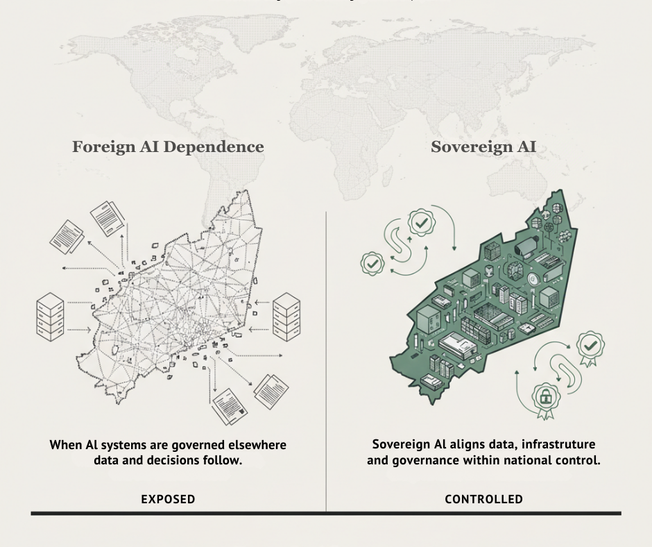 India risks losing its linguistic diversity in English-based AI models. Germany recognizes that strategic industries require computational independence immune to foreign policy shifts. Sovereign AI, the capacity to design, develop, and govern AI systems using domestic infrastructure, local data, and indigenous models, eliminates dependencies that expose nations to surveillance, coercion, or geopolitical leverage.